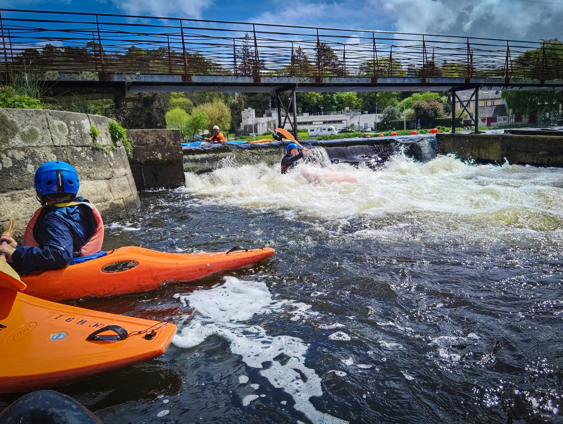 Mais la motivation était bien là : objectif du jour, descente des glissières ! Accompagnés des Yaouanks et des jeunes du stage Atout Sport, les participants se sont amusés à descendre les glissières… en avant, en arrière, et même sans pagaie ! Une journée riche en sensations, clôturée en douceur par un goûter convivial, grâce aux délicieux gâteaux de Geneviève et Marie.