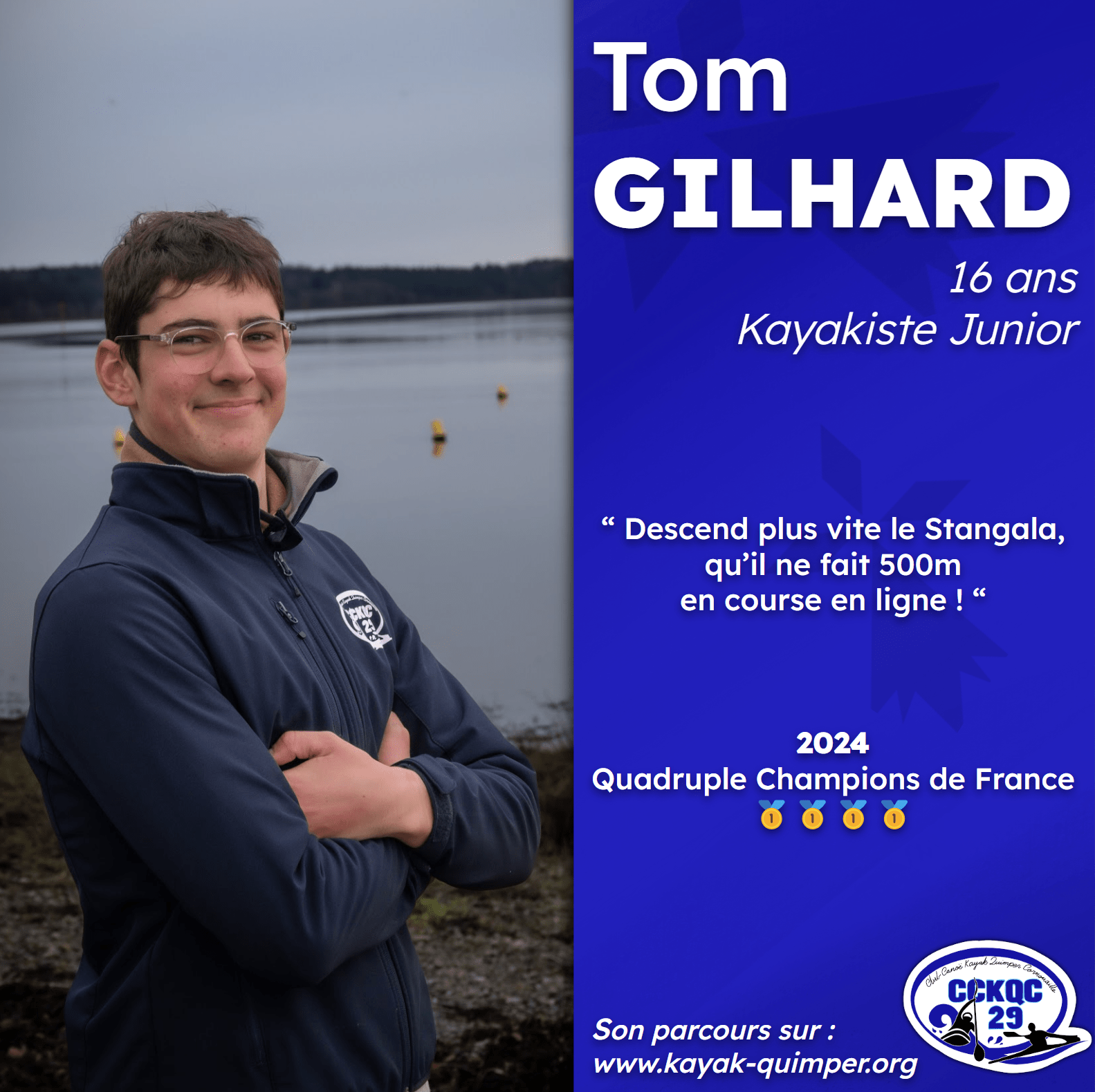 Tom Gilhard est un kayakiste prometteur du Club de Canoë-Kayak de Quimper Cornouaille (CCKQC).